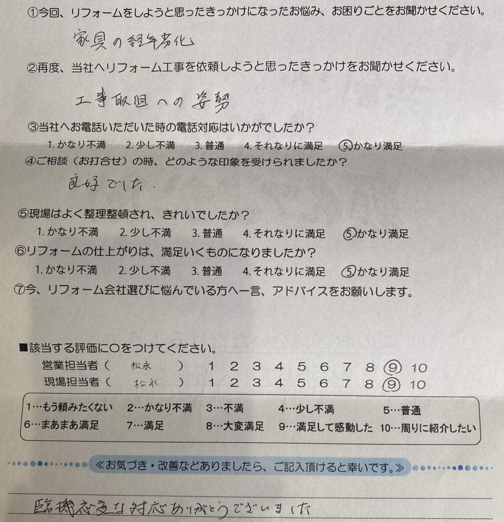 ≪再度、当社へリフォーム工事を依頼しようと思ったきっかけをお聞かせください。≫
